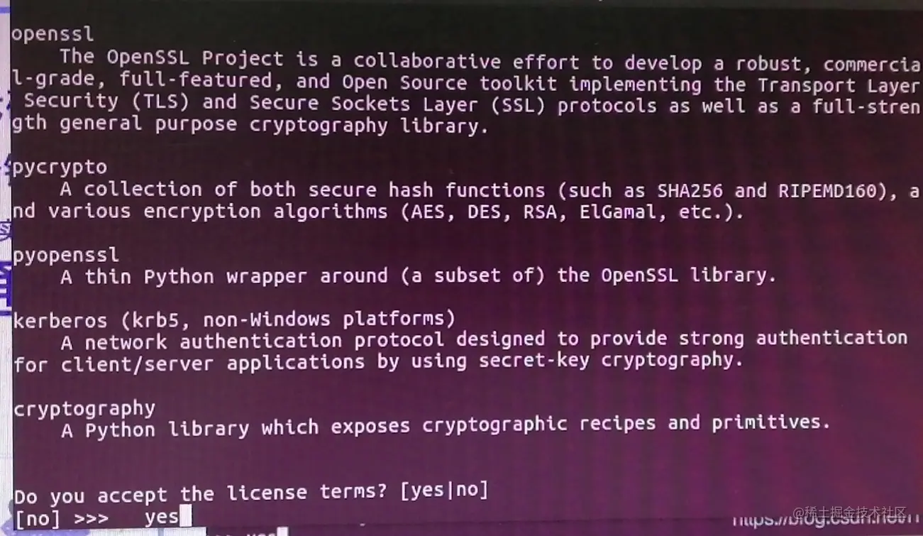 - 然后按住空格键,一直到下面最后许可信息显示完出现下面提示: