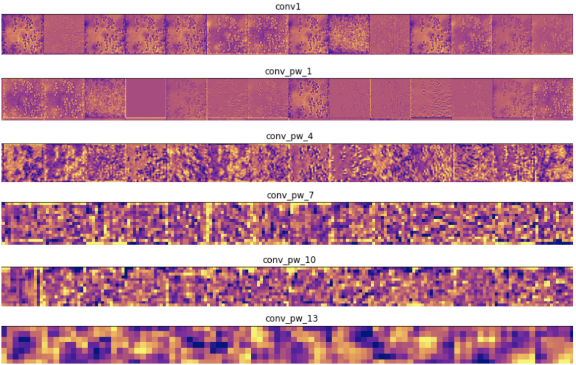 我们还研究了本教程中的最后一项技术,该技术显示了每个卷积滤波器最大程度地响应哪些图像,但是对于我们特定的酵母细胞模型,可视化效果并不是很有用。