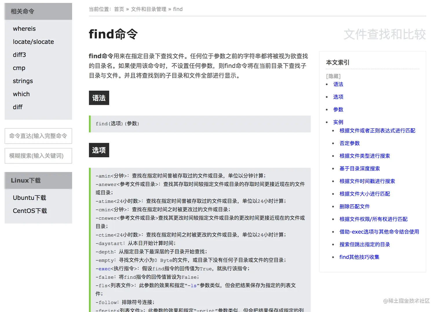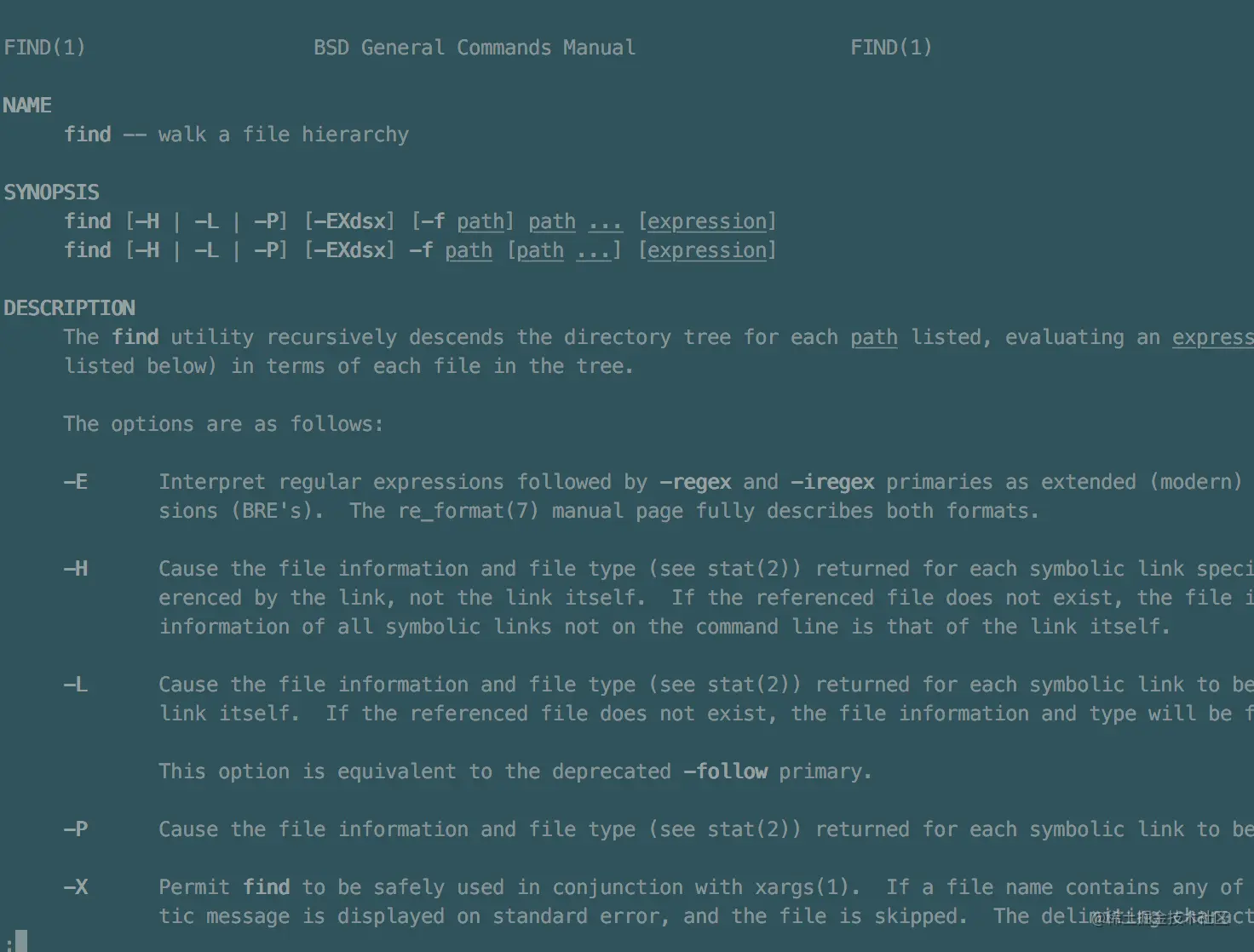 输入你要查询的命令,比如find,会给出该命令十分详细的参数解释,以及大量的示例。
