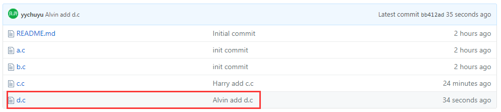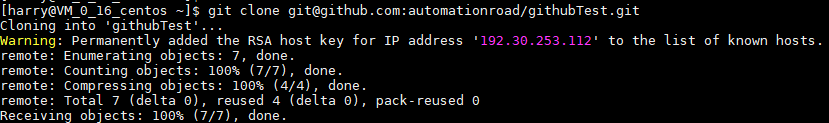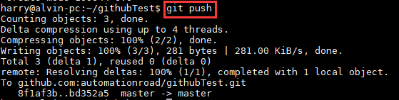 现在,Harry电脑上的代码与原项目代码保持同步了。我们再使用git push命令,就可以将最新代码推到Harry账号下githubTest项目里