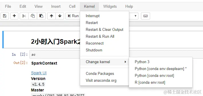 安装成功后,在kernel -> change kernel中即可切换到指定的虚拟环境