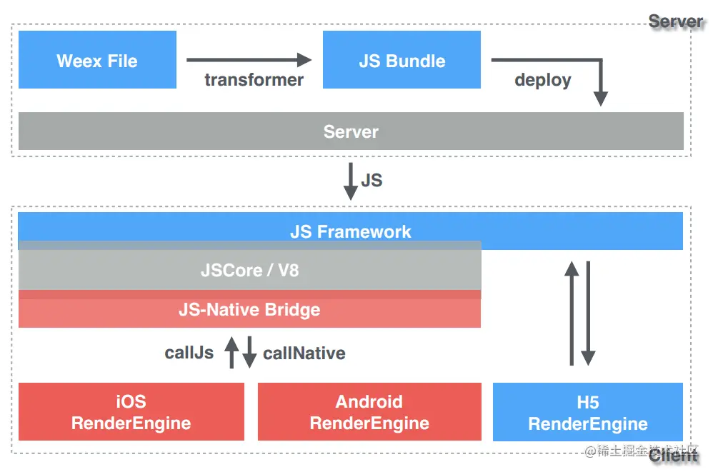 先放一张官方的Weex架构图: