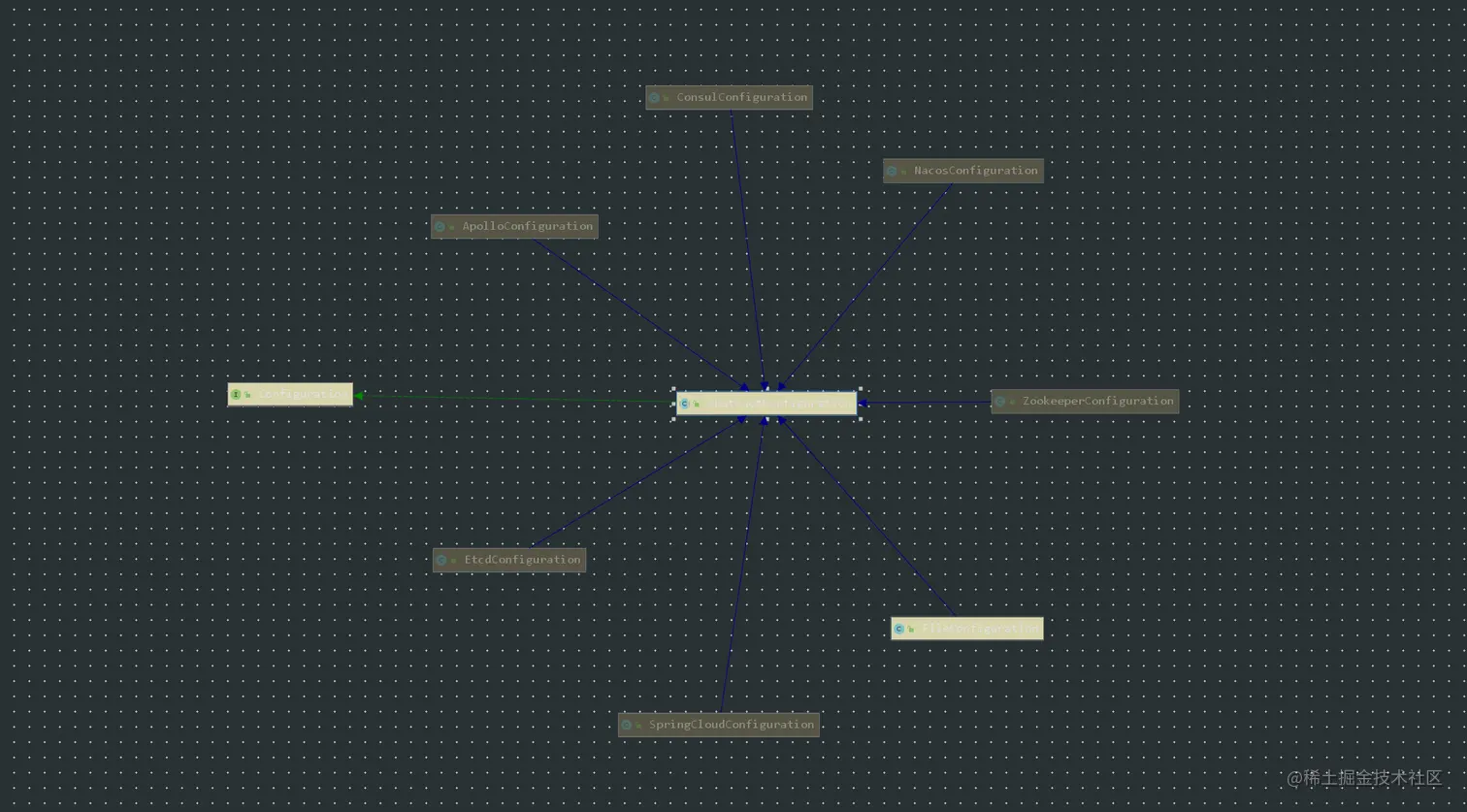 其实这里我对配置中心的使用有点疑惑,为什么要这样设计呢?Server可以是一个独立的应用,它完全可以有自己的配置中心,和Server相关的配置,直接使用应用本身的配置中心就可以了。Client的配置一般是通用的,这时我们一般会将这些相关的配置放到一个公共的namespace里面,对于应用本身,每个应用本身就有一个自己的配置namespace,这时候只需要将Client相关的namespace关联上就可以使用了。这样客户端接入非常方便,公共配置的维护交给中间件维护就好了。