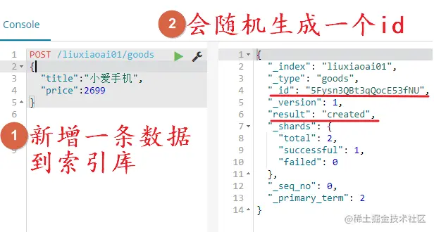 昨天我们给索引库设定了几个字段,以上述例子中的title字段为例,给其添加一条数据“小爱手机”,这样后面可以通过索引库来快速定位这条数据了。