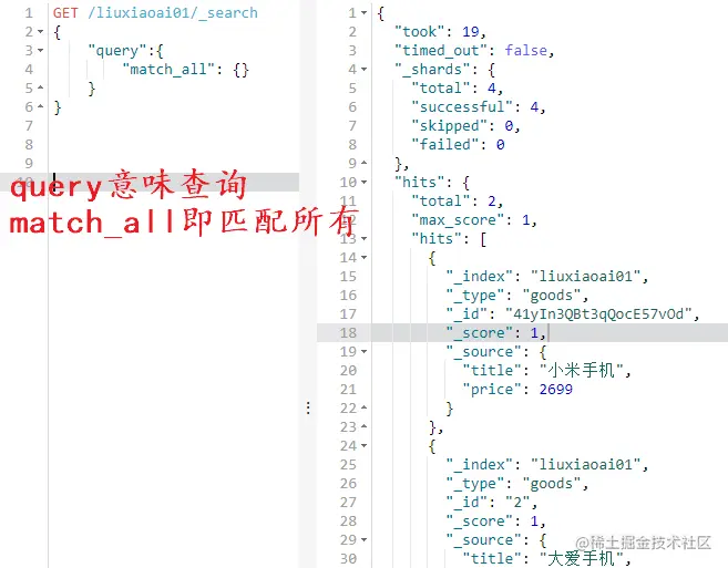 - match_all即代表了匹配所有,也就对应了上图中的例子。