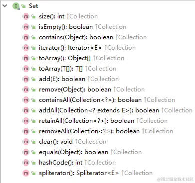 Set<Map.Entry<K, V>> entrySet(); // 返回键值对的set,每一个键值对是一个entry对象