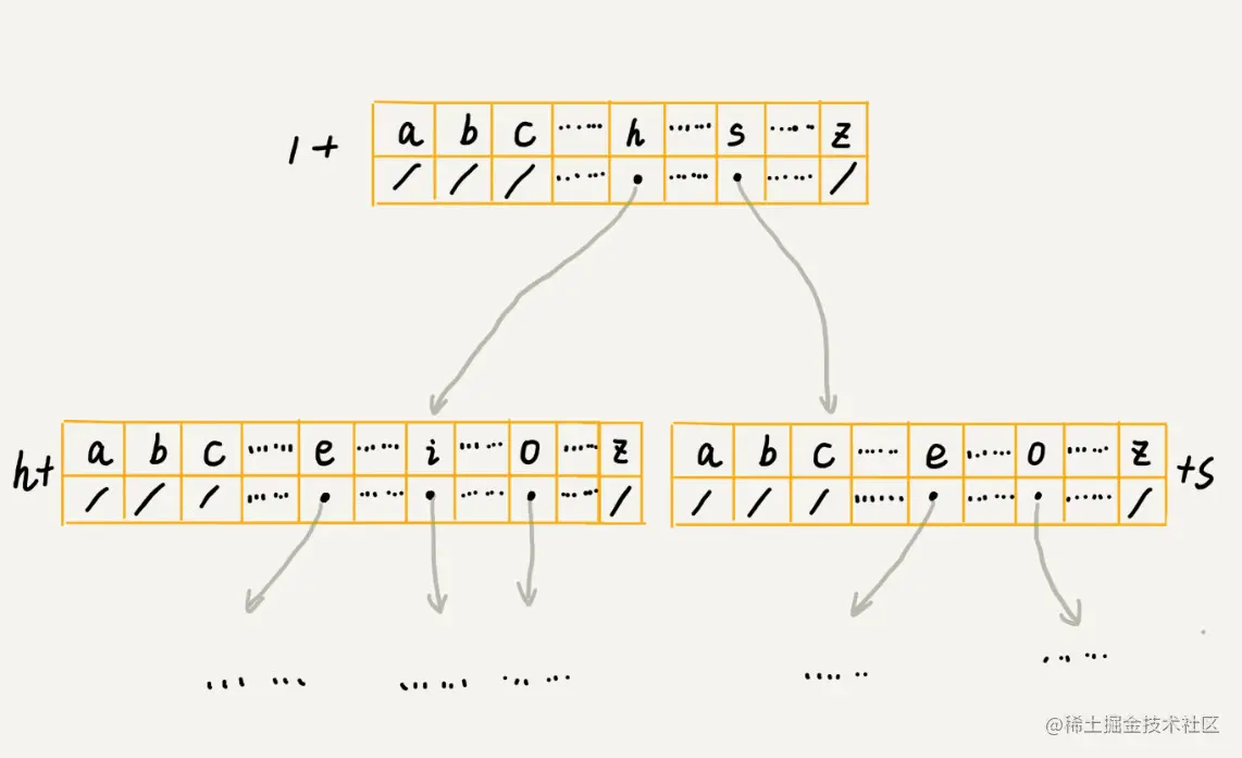 - 通过指针穿起来的数据块是不连续的,而 Trie 树中用到了指针,所以对缓存并不友好,性能上也会打个折扣。