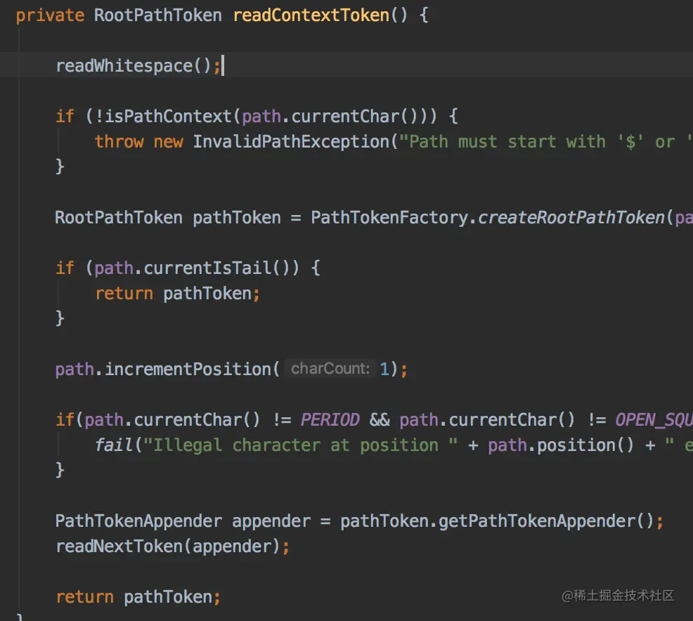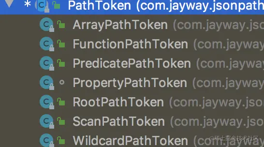 PathToken 及子类来实现各种的路径(RootPathToken 查找的根路径对,PropertyPathToken key-value解析对象)