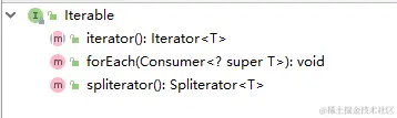 iterable接口其实是java集合大家庭的最顶级的接口之一了,实现这个接口,可以视为拥有了获取迭代器的能力。Iterable接口出现在JDK1.5,那个时候只有iterator()方法,主要是定义了迭代集合内元素的规范。