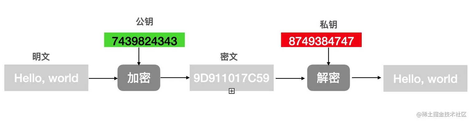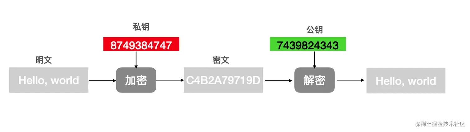 非对称加密是指加密和解密使用不同的密钥,这两个密钥分别叫做「公钥」、「私钥」。