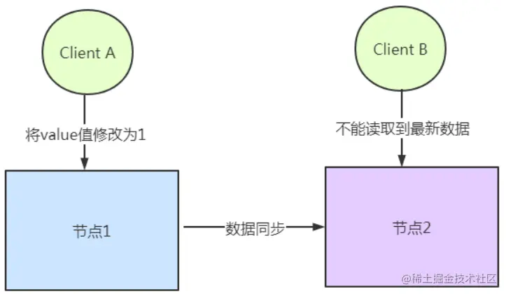 有用户向N1发送了请求更改了数据,将数据库从V0更新成了V1。由于网络断开,所以N2数据库依然是V0,如果这个时候 有一个请求发给了N2,但是N2并没有办法可以直接给出最新的结果V1,这个时候该怎么办呢?