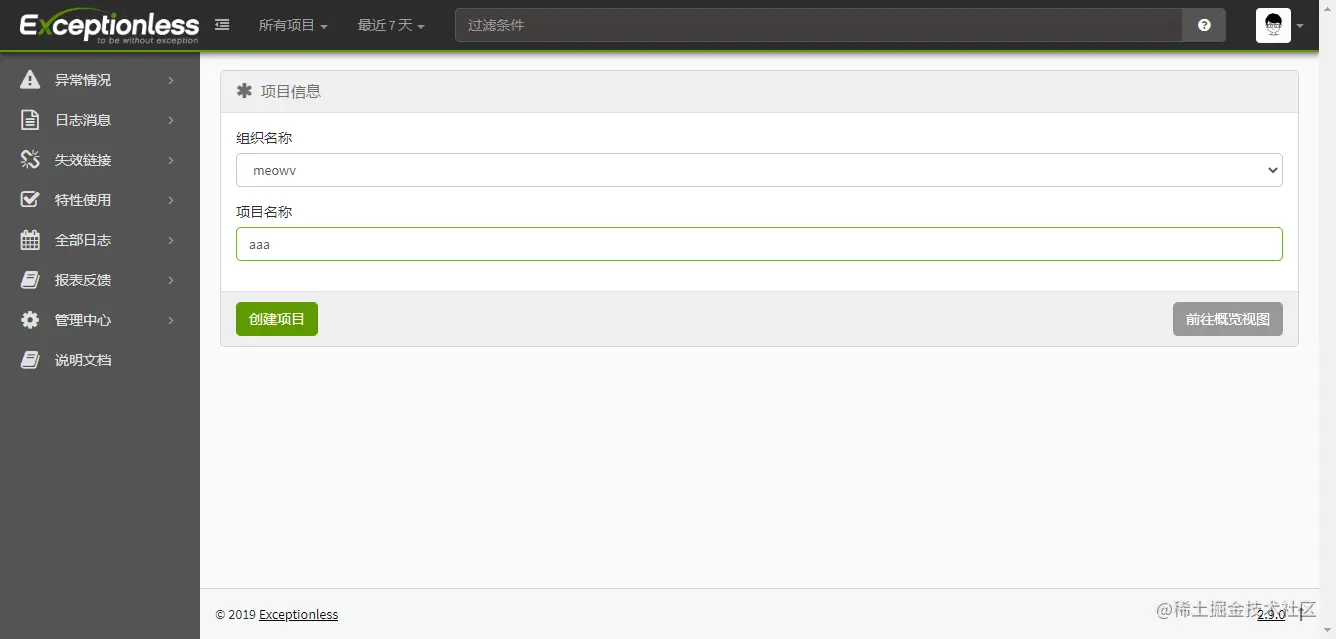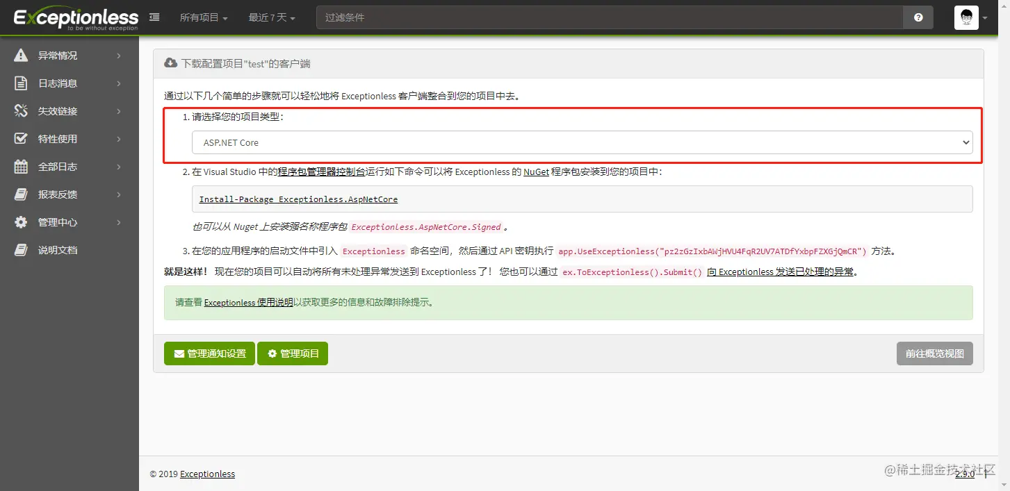 如果是自己小项目,可以直接使用托管的方式接入ExceptionLess,但是如果是公司项目还是建议自己部署吧。