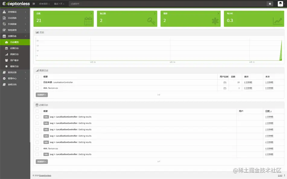 ExceptionLess官网:exceptionless.comExceptionLess开源地址:github.com/exceptionle…ExceptionLess.NET客户端开源地址:github.com/exceptionle…