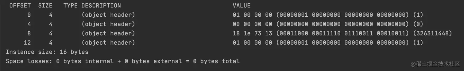 通过 jol-core 的 api,我们将对象的内部信息打印出来