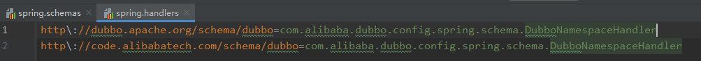 Dubbo 利用了 Spring 配置文件扩展了自定义的解析,像 dubbo.xsd 就是用来约束 XML 配置时候的标签和对应的属性用的,然后 Spring 在解析到自定义的标签的时候会查找 spring.schemas 和 spring.handlers。