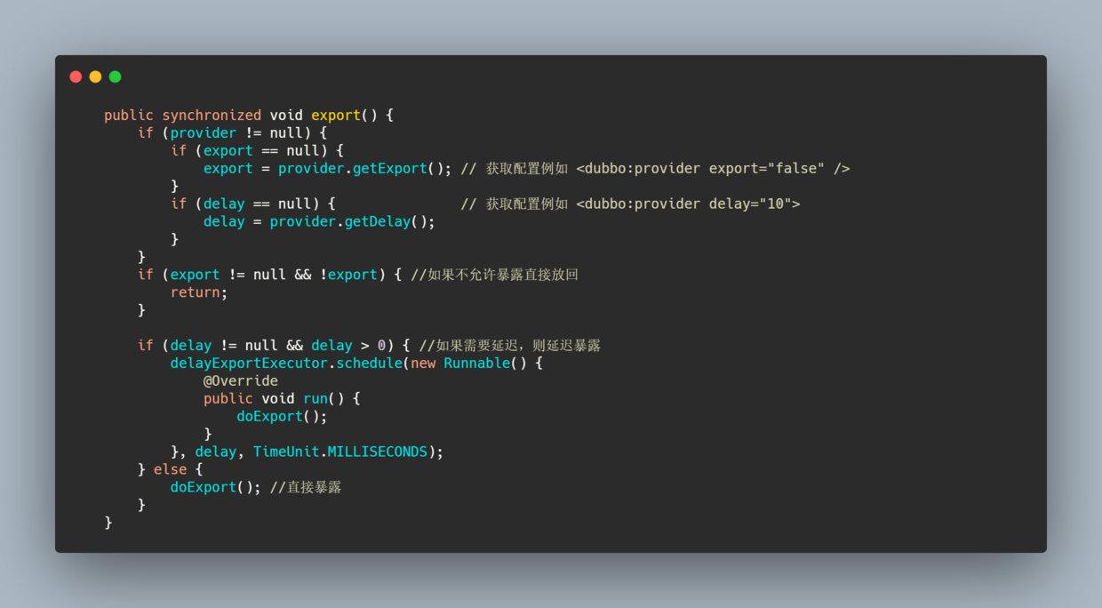 我今天来就带大家看看 Dubbo 服务暴露过程,这个过程在 Dubbo 中其实是很核心的过程之一,关乎到你的 Provider 如何能被 Consumer 得知并调用。