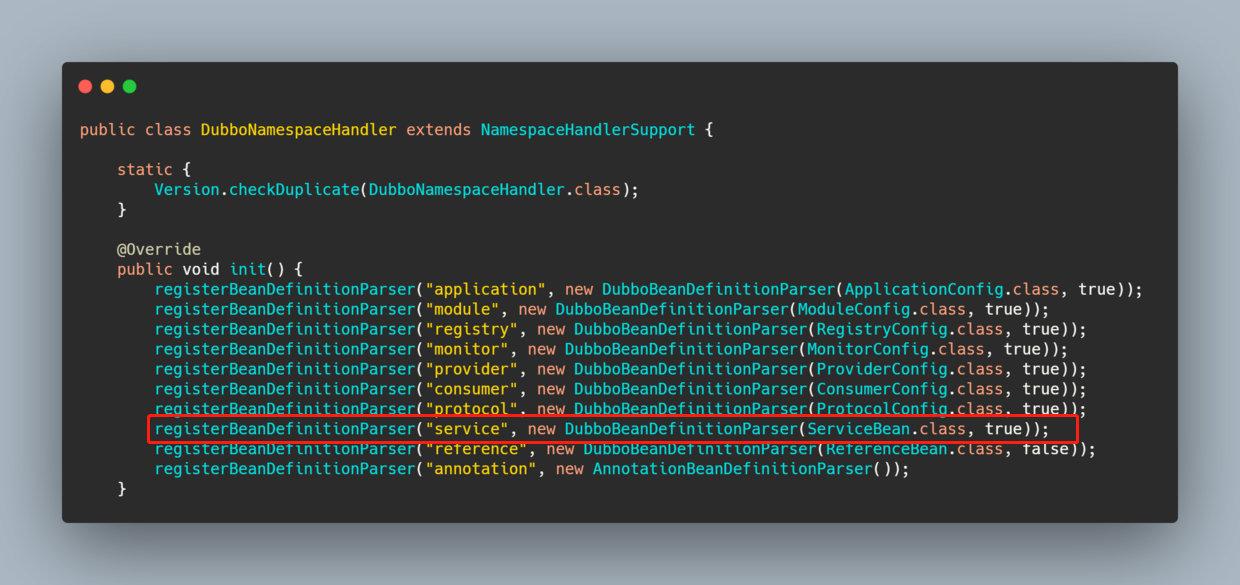 我们再来看一下 DubboNamespaceHandler 都干了啥。
