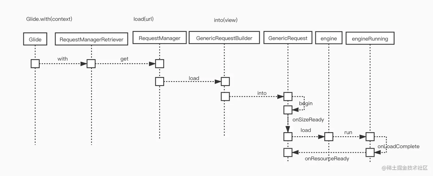 - Glide.with(context) 返回RequestManager, RequestManager由RequestManagerRetriever 管理, 一个context 对应一个RequestManager