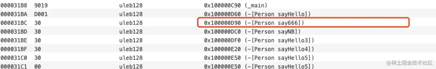 依次内推,找到其他的方法缓存,那如何确认我们打印出来的地址就是没有问题的呢,我们可以通过machOView 来验证一下