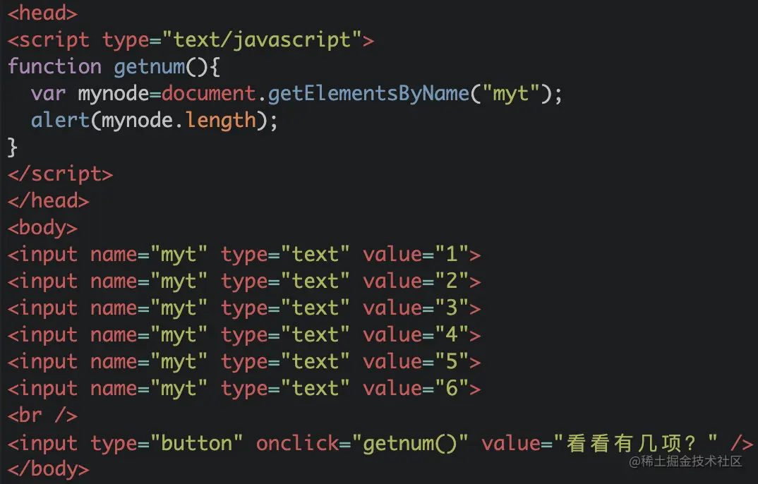 例子: 获取name为myt的元素,同时输出获取的元素节点的长度