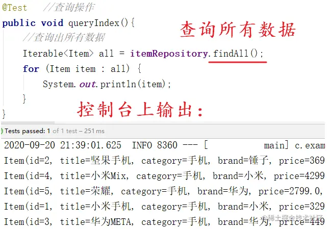 findAll也就是查询所有的数据,因为我们添加了多条数据,所以查询结果是一个集合。