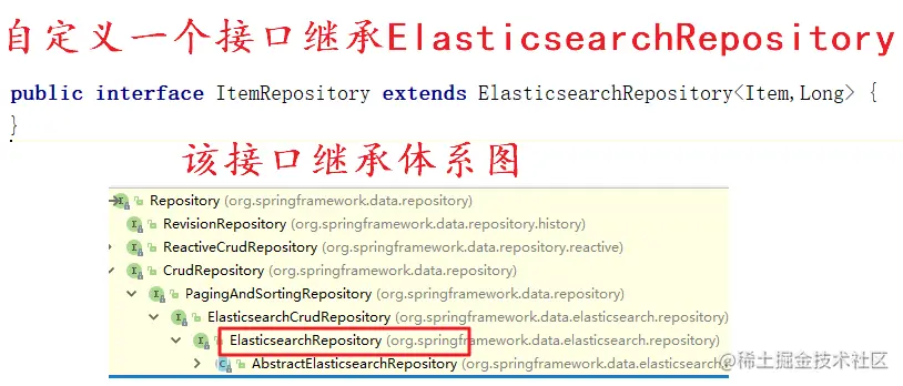 同样的道理,在这里是也是自定义一个接口继承ElasticsearchRepository接口。