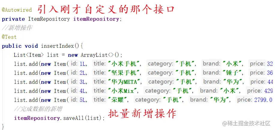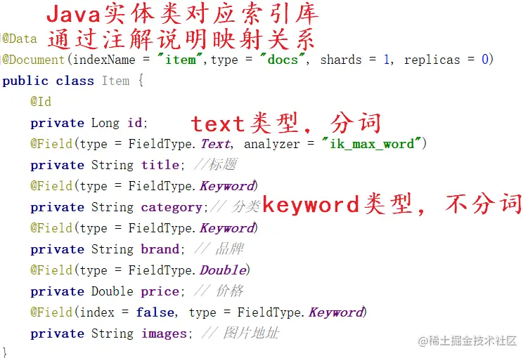 同样的道理,现在是索引库了,在Java中也是使用实体类对应对应的索引库。