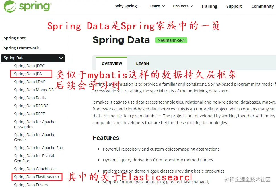 - 这里不学原生的Elasticsearch客户端,而是直接学习spring提供的套件:SpringDataElasticsearch。