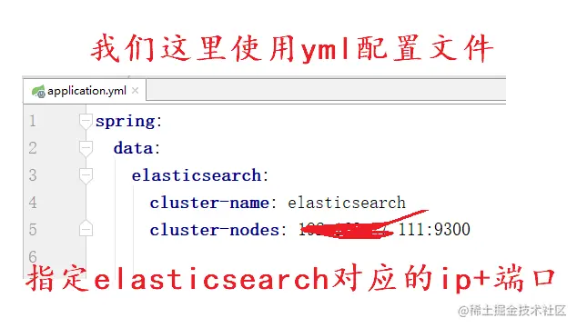 在配置文件中指定elasticsearch中对应的ip+端口,也就是我们前几天在虚拟机上安装elasticsearch的ip和端口。