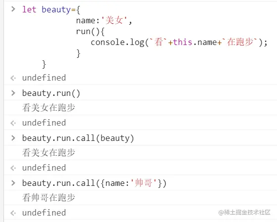 - beauty.run(); 会自动把beauty传到函数里面作为this