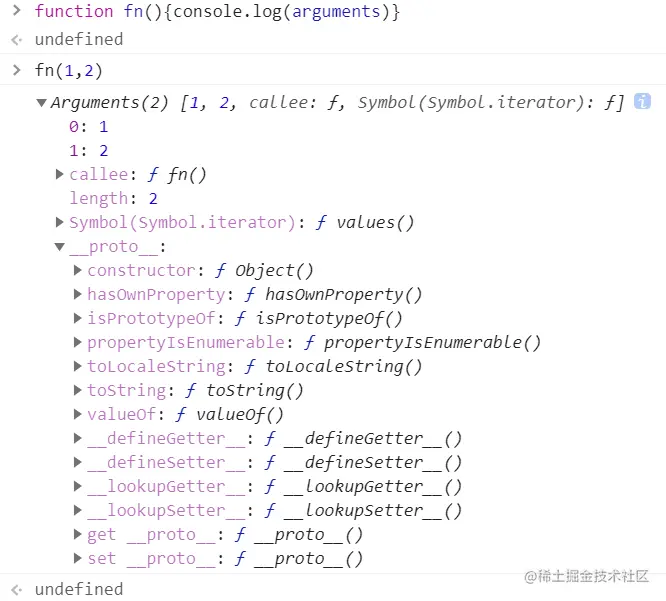 - arguments是伪数组,没有数组的共有属性(push...)的数组就是伪数组,arguments的原型是Object.prototype