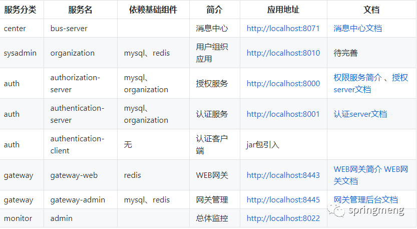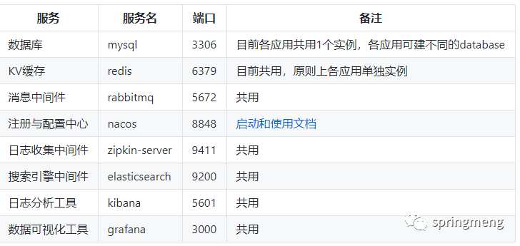 只有部分应用有数据库脚本,若启动的应用有数据库的依赖,请初使化表结构和数据后再启动应用。