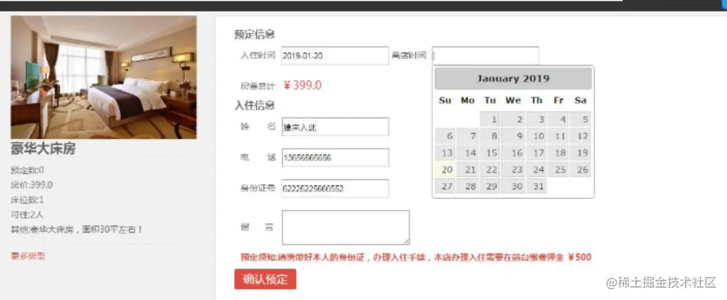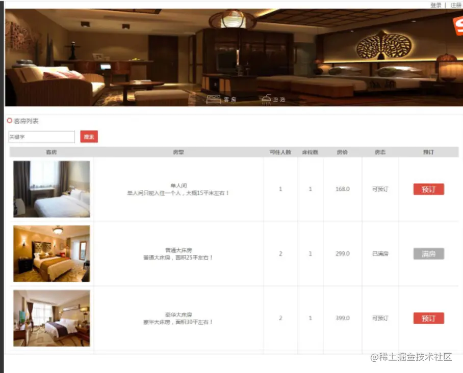 登录、注册,查看房型、预定房型。