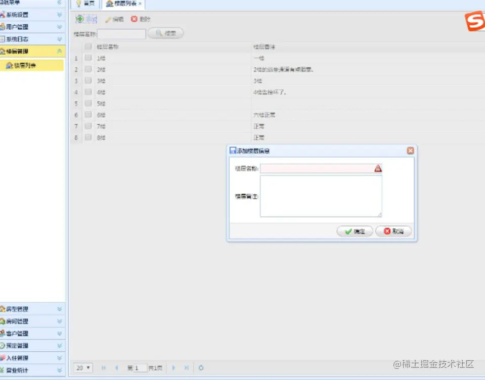 功能:楼层的增加、编辑、删除功能。