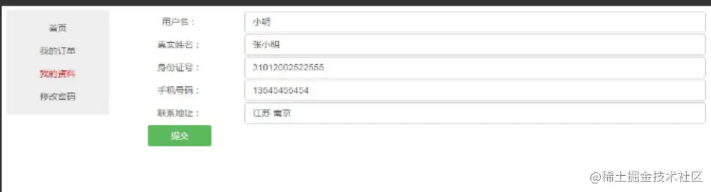 用户中心订单列表、修改信息、修改密码。