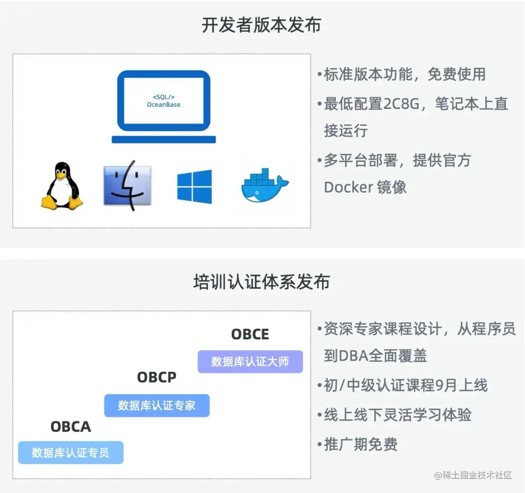 在人才生态方面,打造高含金量工程师认证课程,三年培养上万分布式数据库人才,并与顶级高校建立校级实验室和联合人才培养基地,实现产教融合。在技术生态方面,OceanBase持续在全国开展技术分享活动,联动多个数据库社区深度合作,打造高质量社区,并积极对接上下游工具和平台,拓宽技术生态。蚂蚁集团OceanBase CEO、金融云总经理杨冰表示,“我们始终坚定地相信分布式数据库就是未来的主流,OceanBase 有着十年的专业技术积累,我们希望把它们传播出去,帮助开发者更好的成长。”