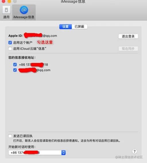 第一步:在Mac电脑上的登录短信iMessage,