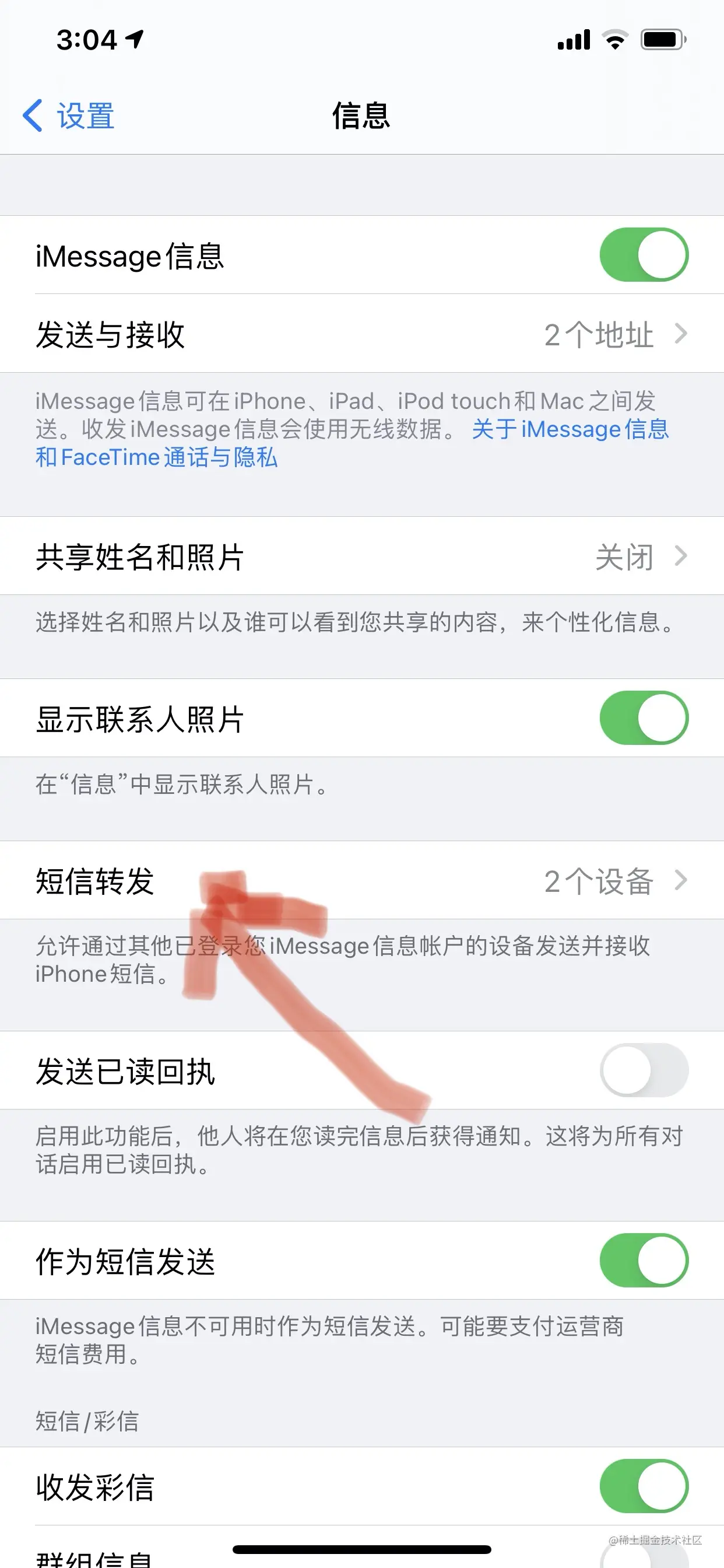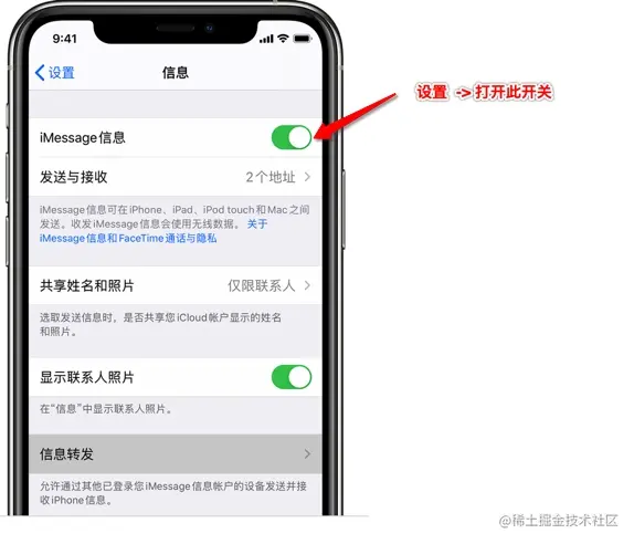- 开启iMessage的消息转发功能,详情如下