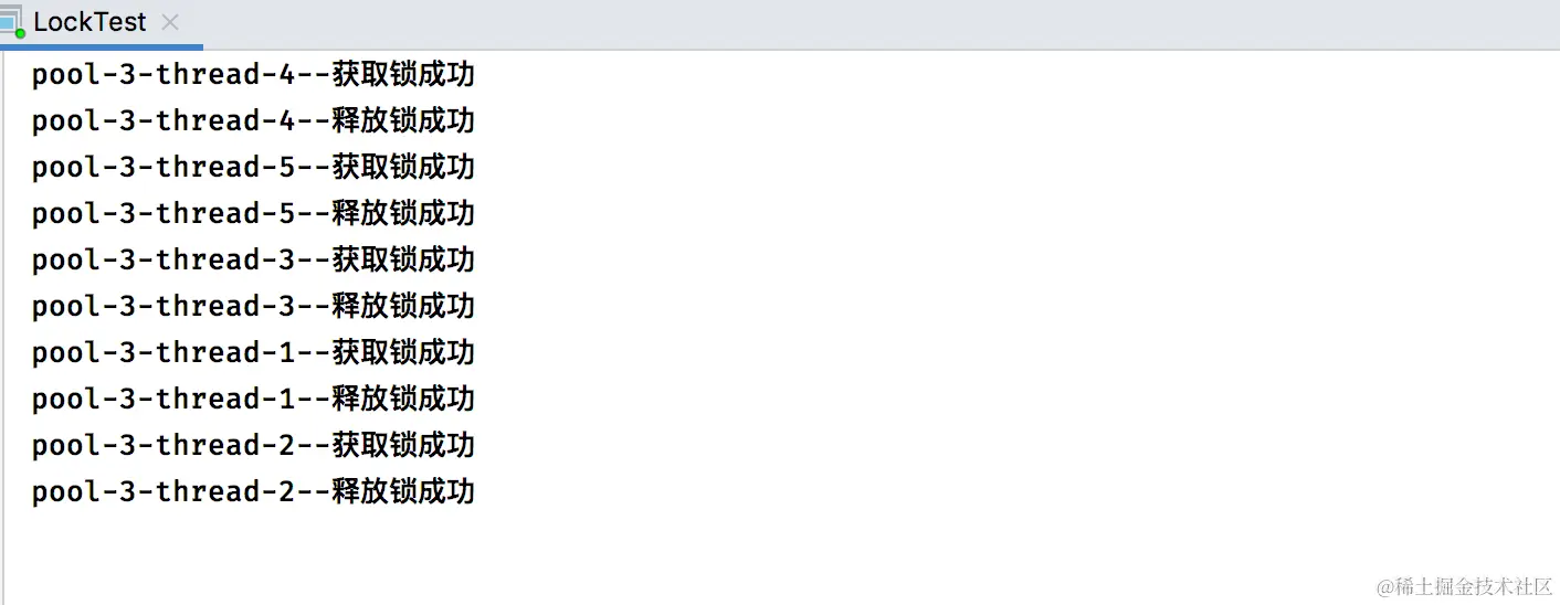 System.out.println(Thread.currentThread().getName() + "--获取锁成功");