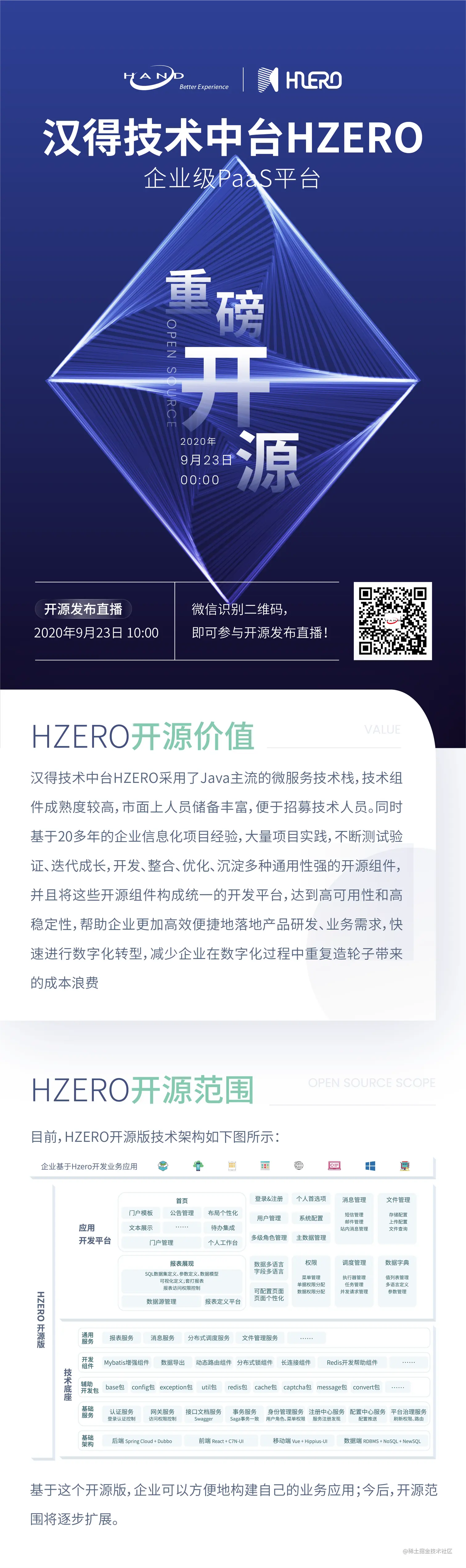 汉得信息自主研发的企业级PaaS平台HZERO于2020年9月23日零点重磅开源!