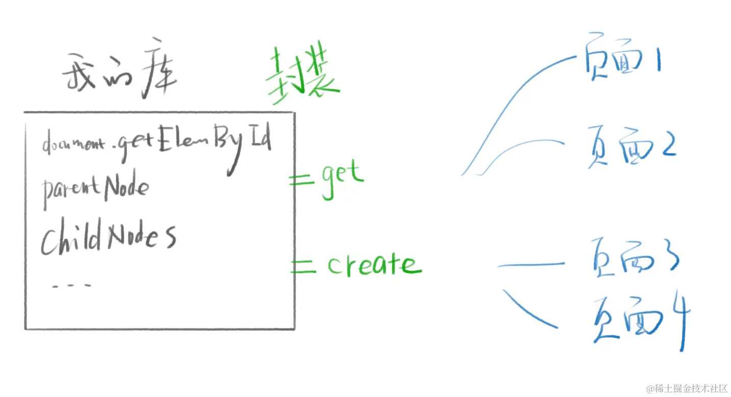 - 我们把提供给其他人用的工具代码叫做库 比如jQuery、Underscore