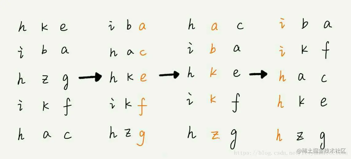 2. 借助稳定排序算法的思想,可以先按照最后一位来排序手机号码,然后再按照倒数第二位来重新排序,以此类推,最后按照第一个位重新排序。
