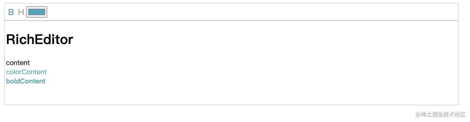 如何在web端实现一个富文本编辑器,会有几个实现方式。而比较方便且能基本满足一般需求的方案是,利用html5的contentEditable属性,再配合上js的document.execCommand()和execCommand相关的一些判断方法。于是我尝试使用这个方案写了一个简单的富文本编辑器,这个编辑器实现了三个功能,加粗、设置标题和设置颜色。先上图让大家有个大致的印象: