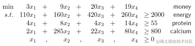 例如下面例子,就是一个线性规划问题: