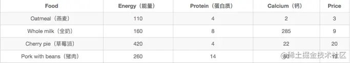 要求所买食物中,至少有2000能量,55蛋白质,800钙,求最省钱的方案。