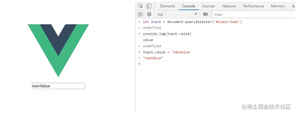所谓数据双向绑定,就是 js 对象的数据变了,页面元素的值会发生变化。 那在 js 里面调用 o.name = 'XXX' 的时候,把页面元素改掉就好了,因为会自动调用 set 方法,就在 set 方法里面写。 然后在 js里面给 o.name 赋值,调用了 dom api,页面的内容就会发生改变。