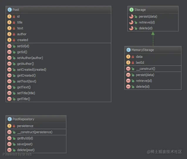 * 这个类位于实体层(Post 类)和访问对象层(内存)之间。