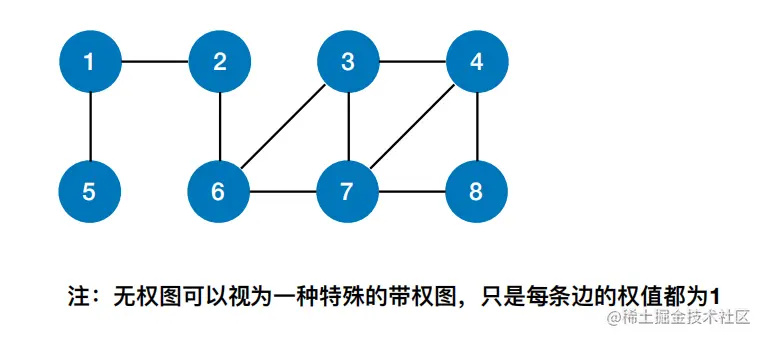 若图G=(V,E)为非带权图,定义从顶点u 到顶点v的最短路径d(u,v)为从u到v的任何路径中最少的边数;若从u到v没有通路,则d(u,v)=无穷 BFS适用于无权图