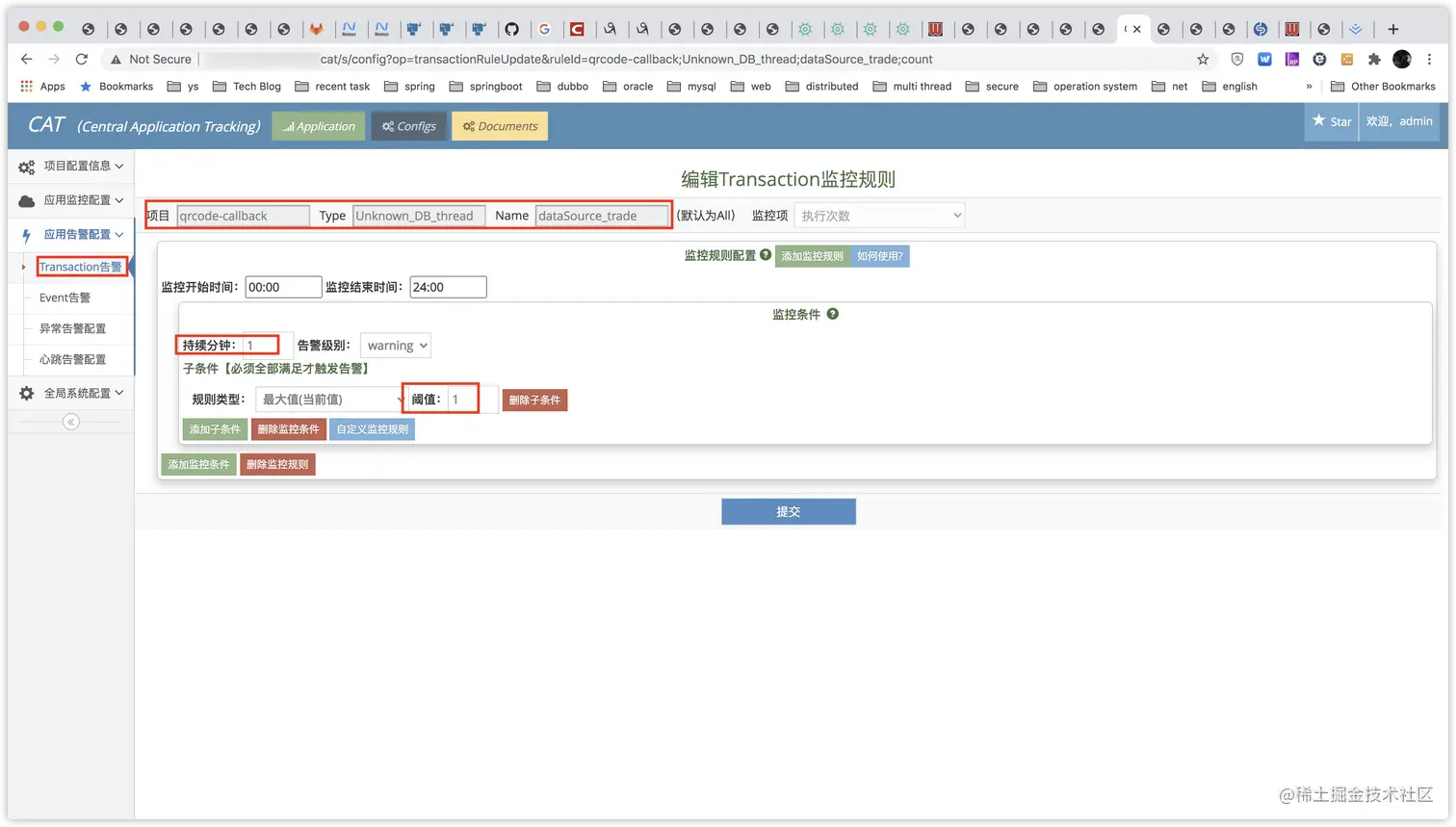 1.配置transaction告警阈值