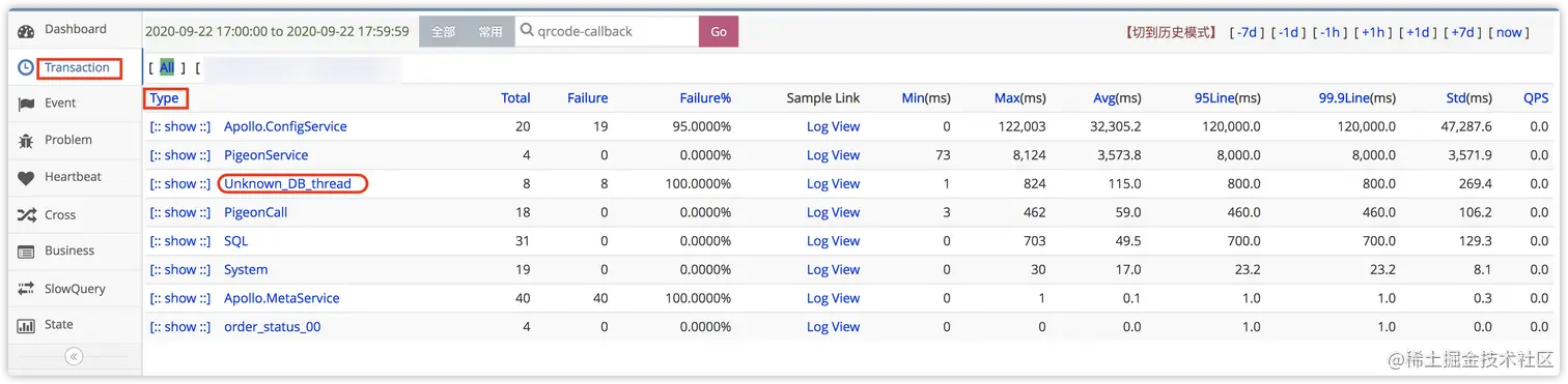 cat界面展示监控数据,看transaction下面的type